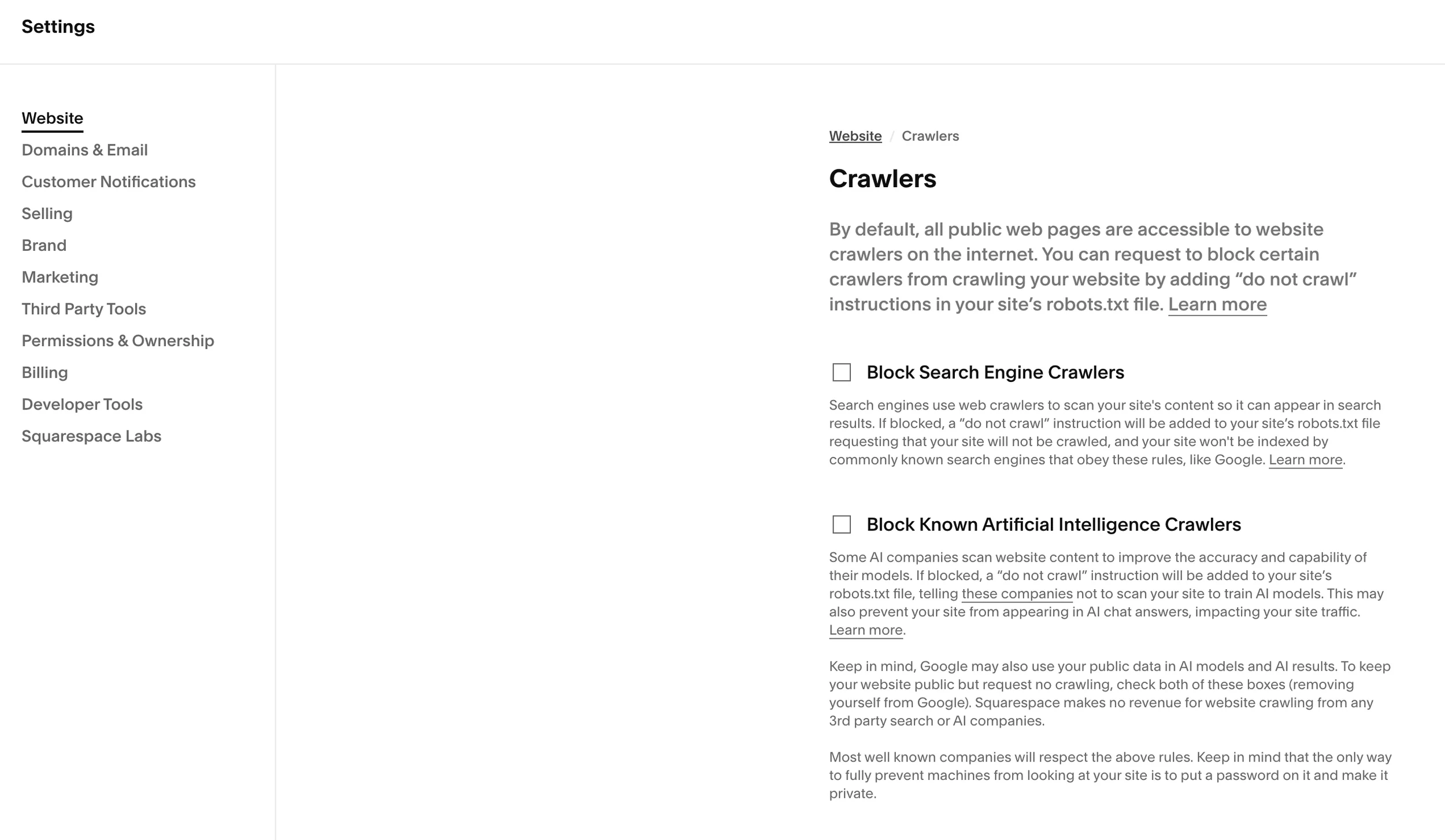 To do this, go to Settings > Website > Crawlers and check the boxes that you see below.